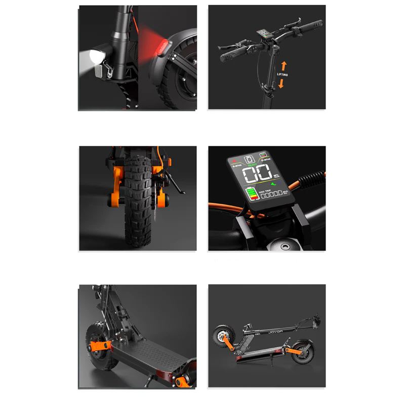 Le cadre robuste est fabriqué en aluminium de qualité aéronautique pour une faible densité et une résistance structurelle élevée. Il a également une excellente conductivité thermique et une résistance à la corrosion, ce qui le rend plus durable. Les phares sont un must pour la conduite de nuit, mais tous les scooters ne sont pas équipés de phares. Le S8-s-z est équipé d’une lampe frontale ultra-lumineuse de 1,1w avec une portée allant jusqu’à 6 mètres pour plus de sécurité. Pneus avant et arrière de 10 pouces, bonne absorption des chocs, bande de roulement antidérapante, avec moteur cc sans balais 2*600W, sortie de puissance stable, S8-s-z vous apportera une expérience de conduite plus lisse.